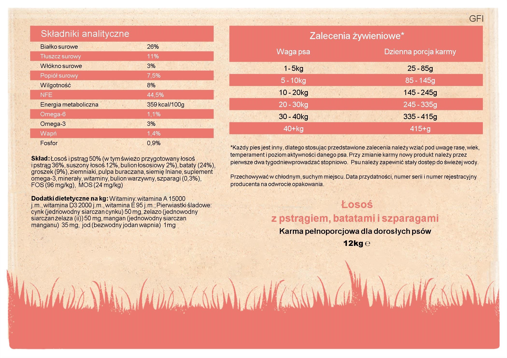 Natural Pet Food Grain Free Adult Łosoś z pstrągiem, batatami i szparagami