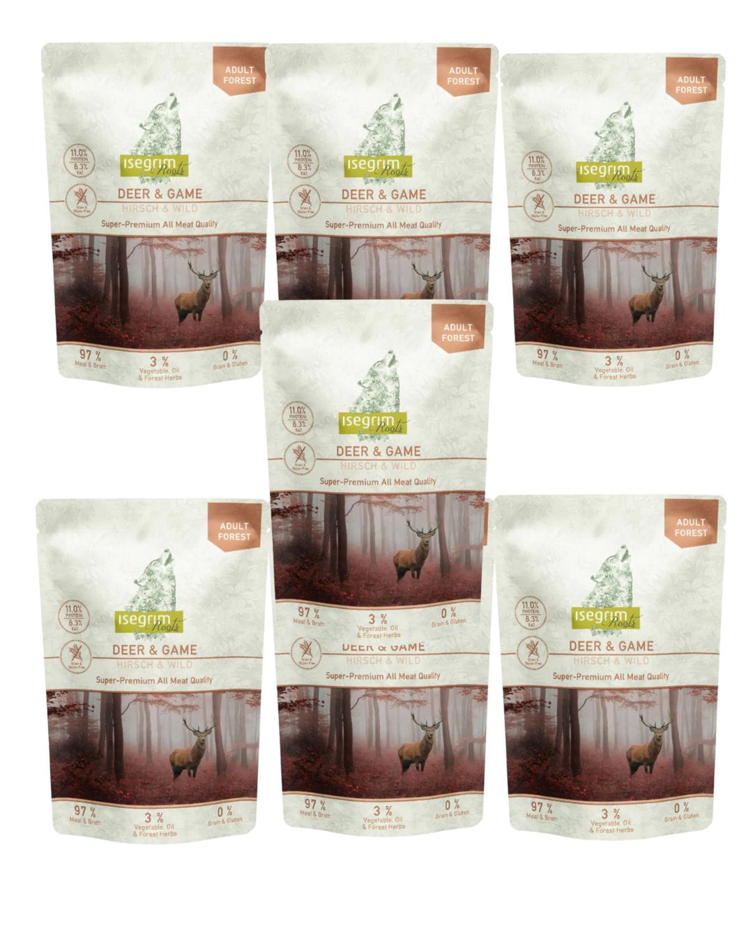 PROMOCJA Isegrim saszetki Adult forest Sarnina, dziczyzna z korzeniem pietruszki 6 x 410g plus 1 saszetka GRATIS