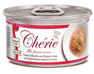 • Miks tunczyka zóltopletwego i pasiastego, podawane wraz z delikatnymi kawalkami swiezego lososia w specjalnym sosie Chérie.